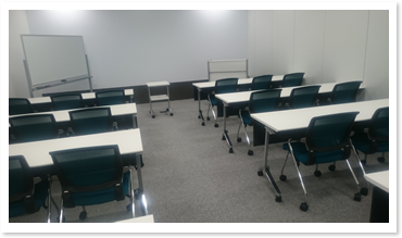 それなのに、関西圏のクライアント企業の皆さまにお越しいただき、研修なども受けていただきやすいようにと、さらにセミナールームも設置。多少狭い感じですが、30名ほどは入る部屋を確保。このスペースにもかなりな家賃を注ぎ込むことに・・・。セミナールームはこんな感じ。