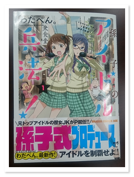 元トップアイドルが孫子の兵法を用いて素人の女子高生をアイドルとして育てていくという漫画を発見。その名も「孫子のアイドル兵法!」。孫子兵法家としては、孫子の兵法がついにアイドル育成にまで用いられるようになったという嬉しいような、そこまでやらなくていいような、複雑な気分になる。Amazonで発見した時は、孫子をテーマにしたビジネスコミックかなと思って、よく中身を確認せずに注文したので分からなかったのだが、ドラゴンエイジという月刊誌に連載されているガチな漫画のようだ。作者は、「わだぺん。」氏。