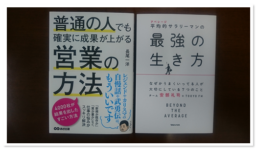 嬉しくなって、「平均的(アベレージ)サラリーマンの最強の生き方」(マガジンハウス)を買って、平均つながりの拙著と並べてパシャリ。